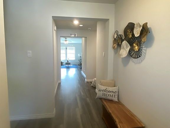 Welcome to this cozy 4-bedroom 2-bathroom home located in the Warriors Legacy Subdivision! Step inside to find durable vinyl flooring flowing seamlessly through the entry, kitchen, living area, dining area, bathrooms and laundry room creating a stylish and easy-to-maintain space. Recessed lighting and ceiling fans throughout enhance comfort and ambiance. The spacious kitchen boasts a large island, stainless steel appliances and a pantry making storage a breeze. The primary bedroom is generously sized and a private retreat complete with dual vanity sinks and a walk-in closet. The secondary bedrooms are amply sized perfect for anyone! Other amenities include a two-car garage, wood privacy, and covered front patio. Call and schedule a viewing today!