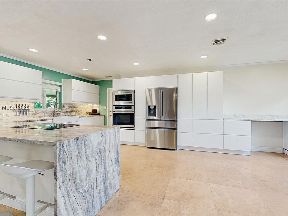 Granite countertopsAbundant natural lightZebra blindsSleek cabinetryTravertine floorsScreened-in patioUpdated kitchen