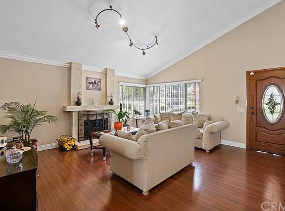 This rare 5 bedroom, 3 bath home will delight you as you stroll through the entry way to the sounds of the tranquil Koi pond. Enter the open and bright living room with a vaulted ceiling, tiled fireplace, and laminate floors. Spacious dining room is located adjacent to the kitchen with tile floors and a ceiling fan. Kitchen features island/breakfast bar area, granite counter tops, new dishwasher, stove top, oven, microwave, water filter, and tile floors. Downstairs offers 3 bedrooms, one master suite with 3/4 private bath, dressing area, and private exit to backyard. Upstairs offers a second master bedroom with a walk in closet, double door entry, and private access to full bath. Large second upstairs bedroom features a retreat area. All bedrooms have recessed lights and mirrored closet doors. All baths have been tastefully upgraded with tile floors, shower tile walls,vanities,granite counter tops, mirrors, fixtures, and lighting. The master baths have a heated tile floor feature. Crown moulding and double pane windows throughout the home. Inside laundry room with plenty of storage and a sink. Enjoy the Apricot,Guava, Pomegranate, & Orange trees. New vinyl fencing along back of property. Wrap around patio with Grape vines and Bougainvillea plants. Front yard features Japanese Maple tree, Queen Palms, Palm Trees, and sprinklers in the front and back. Double garage with new roll up door. Parking for Recreational vehicles. Walk to nearby Walnut Hills Park. Home is turnkey!