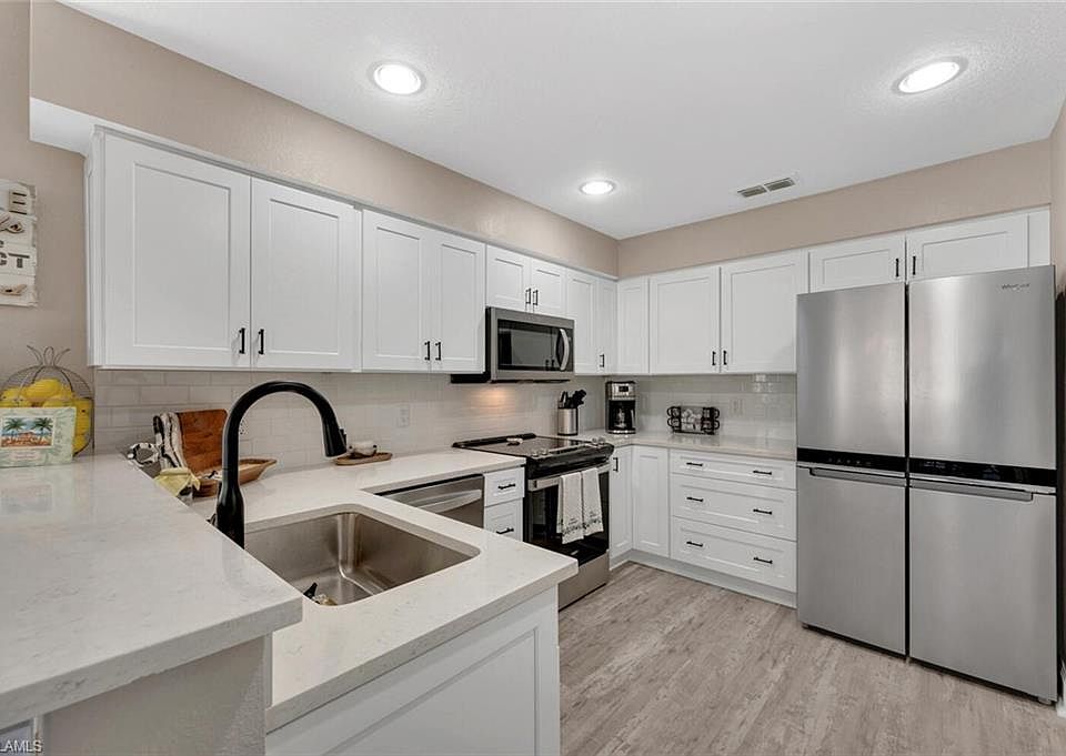 Nestled within the quiet neighborhood of Turtle Point in West Bay Club, this recently renovated gem offers an unparalleled living experience with access to the new beach club and the Gulf of Mexico via the Estero River. The property boasts stunning views overlooking a meticulously landscaped area and a short walk to the neighborhood pool. An entertainer's dream, the kitchen is adorned with all-new Whirlpool appliances, elegantly complemented by quartz counters. With recent renovations including new floors, a master bath featuring a walk-in shower and a separate soaking tub, as well as plantation shutters and designer lighting, this home exudes modern luxury. Its proximity to Coconut Point Shopping and the Lee Memorial Health Center adds to the unparalleled convenience, while the community's resort-style pool, tennis courts, pickleball, kayak and boat storage facilities cater to every lifestyle need. Home ownership also includes access to a state-of-the-art fitness center, and poolside dining. Residents enjoy an idyllic blend of leisure and luxury, with no additional membership required. West Bay Club offers membership to the private Pete and P.B. Dye golf course where a plethora of outdoor activities await.Visit today!!
