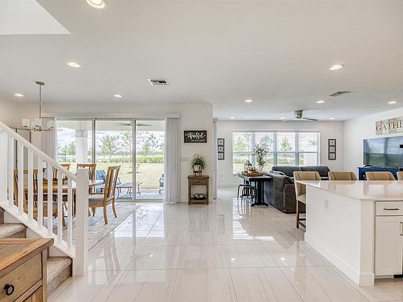 Enjoy breathtaking, unobstructed lake views and incredible sunsets from this bright and inviting 4BR/3BA home in the heart of Arden. Built in 2022, this home offers a screened in patio, a gourmet kitchen featuring a built-in gas range, double oven, quartz countertops, chef hood, and a large central island. The open-concept layout features a downstairs guest suite, and a spacious loft upstairs that can easily become a 5th bedroom. The primary suite includes two walk-in closets and a modern en-suite bathroom with dual vanities and granite counters. Relax on the covered lanai overlooking the lake with plenty of room to add a pool. Best of all, a brand-new elementary school is opening within walking distance next year, adding to Arden's long list of family-friendly amenities, trails, and