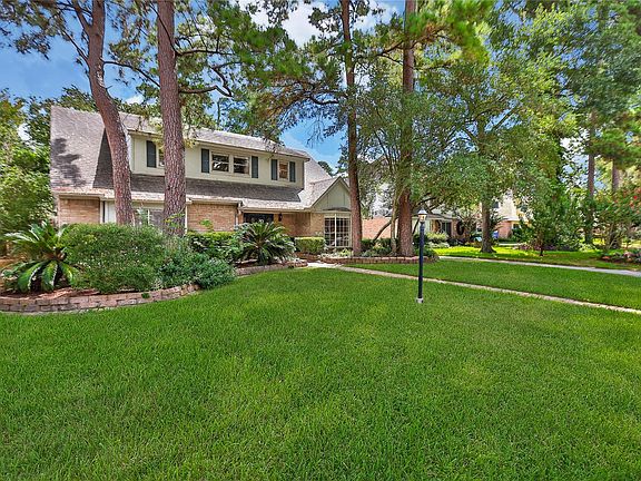This storybook two-story looks like a Hallmark movie! You’ll be swept away by its warmth, charm, and character. The two-story family room features a brick fireplace and catwalk, with French doors opening to a spacious patio shaded by mature trees, complete with pavers and a built-in grill. The kitchen features a high bar, a cozy breakfast nook with a bay window, and a built-in desk, as well as a formal dining room with another bay window. The sunroom addition adds square footage & expands living space! The first-floor primary suite has barn doors, built-ins, and a bath with double sinks, linen storage, and a shower/tub. Upstairs are generously sized secondary bedrooms and a bath. A large utility room offers extra storage and space for appliances. An extra-long driveway leads to a detached garage. No carpet anywhere! A/C REPLACED IN 2022! Zoned to Klein ISD! Come see the magic today!