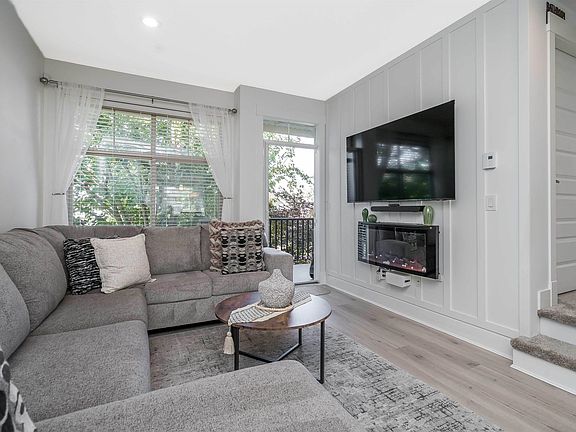 Welcome to UPTOWN, where style meets comfort in this BEAUTIFULLY UPDATED 4-bedroom, 3-bathroom townhome spanning nearly 1700sqft. Designed to impress, it feels like a SHOWHOME. Thoughtful upgrades include fresh paint, elegant light fixtures, granite counters, tile backsplash, wide plank vinyl flooring, new carpets, ALL NEW SS appliances, refinished cabinets with modern hardware, custom millwork, new blinds, screens throughout, and concrete pavers in the private, fully fenced yard backing onto PERMANENT GREEN SPACE. Enjoy amenities including a clubhouse, gym, guest suite, and playground. Ideally located near parks, schools, shopping, transit and commuting routes, with low strata fees.