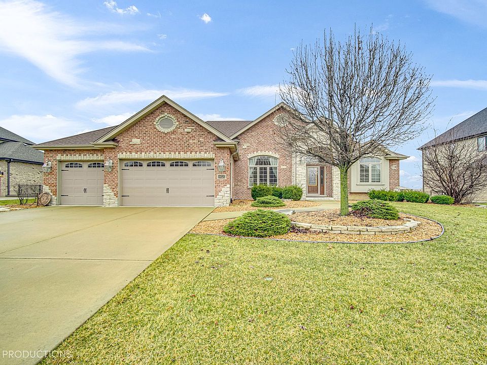 Beautiful custom RANCH home in Foxborough Estates! This home has so many quality details throughout! Great open concept floor plan with white trim & 8 ft solid interior wood doors. Upon entering the foyer you'll find the beautiful dining room with hardwood floors, wainscoting, crown molding & tray ceiling with additional lighting. The study will also feature hardwood floors & crown molding, tray ceiling lighting, but also a bay window with storage and French glass doors. The large family room is the heart of the home with high ceilings, wood burning fireplace & electrical floor outlets. It flows easily into the kitchen that features custom cabinets with plenty of drawers for storage, and Kenmore stainless steel kitchen appliances such as oversized Refrigerator & freezer, double oven, microwave, dishwasher, & trash compactor. Granite countertops & breakfast bar overlook to the kitchen table area. Sliding glass patio doors open out to maintenance free Trex deck (Attached gas Weber grill stays!) The deck currently has trellis bolted down to provide shade for the morning sunlight. Good sized master bedroom with walk-in-closet, & bathroom suite with double sinks, whirlpool tub, and full body spray shower. Bathroom also has accessible decorative grab bars! On the opposite side of the home you'll find the additional 2 bedrooms and shared bathroom with shower. Bedroom 3 is currently used as a den just off the kitchen. Convert it to true 3rd bedroom by removing glass door and drywalling, or leave it as another home office, toy room, or craft room! There is plenty of closet space throughout the home too. Before heading downstairs you'll find dry bar area which is great for entertaining! Full unfinished *lookout* basement that allows for plenty of natural sunlight. The basement is massive with so much potential! Rough-in plumbing for future bath, high 9ft ceilings and masonry fireplace. Laundry room (with new washer/dryer in 2021) is located just off the *Heated* 3 car garage. New Furnace & AC in 2021. Central vac. Home is professionally landscaped with sprinkler system. Property currently backs up to wooded trees providing great privacy with no direct rear neighbor. Rear patio area on ground level too. This is a great opportunity to be in an excellent Mokena neighborhood with Chicago water & Lincoln Way school district. Schedule a showing today!