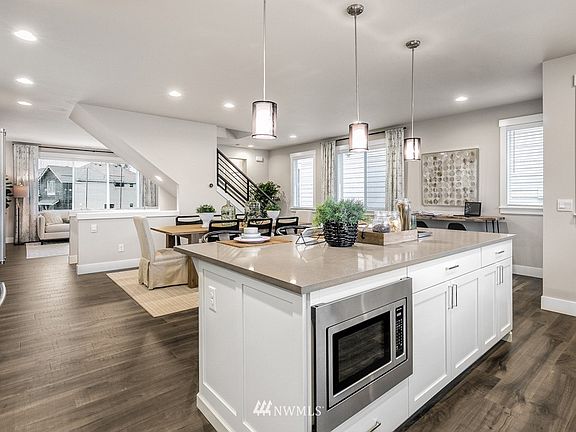 Reduced! Rosefield! A charming new 22 home community quality built by RM Homes. Detached 3 story home with 2 car garage boasts a lower-level rec or 4th bd w/ full bath. Gorgeous chef's kitchen features gas range, soft close white cabinetry and quartz counters. SS farmhouse sink w/motion sensor faucet. Great room concept with modern appeal. Gas fireplace and deck. Hard surface flooring on 2 levels with rich trim detail on main level. Owner's suite with lux master bath and WIC. North Creek Trail is at your doorstep! Secluded Bothell location. Coveted Northshore Schools, August move in. South facing entrance. Includes blinds and A/C! Open this weekend 11-5pm