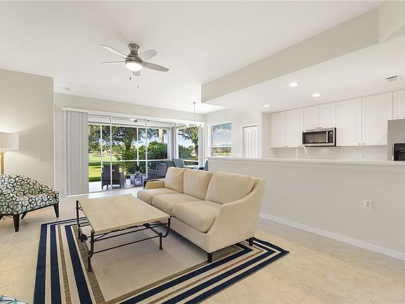 Enjoy the Naples lifestyle without the golf fees. This first-floor end unit in Heritage Greens sits right on Arrowhead Golf Course, where western exposure delivers spectacular sunsets over the fairways and lake. The two-bedroom plus den, two-bath home is light, bright and well cared for. An open kitchen with stainless appliances flows into the main living areas, all with sweeping golf course views. Tile throughout with carpet in the bedrooms, a full laundry room and an attached garage add everyday convenience. The spacious screened lanai with electric storm shutters is the ideal place to unwind while taking in the views. Heritage Greens offers great amenities such as public pay-as-you-play golf, pickleball, tennis, basketball, playgrounds and multiple pools. It’s a well-established, tree-lined community in a prime North Naples location—close to shopping, dining, top schools and just minutes to the beach. Easy access to Interstate 75 makes it convenient for commuting or exploring. Rentals are allowed, making this a smart investment as well as a wonderful home for full-time or seasonal living.