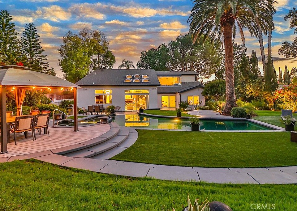 Exceptional, one-of-a-kind, Cul-De-Sac home in Porter Ranch. As you walk in, you can already contemplate the meticulously designed backyard with gorgeous heated Plexiglas infinity border pool and Jacuzzi. Open floor plan with high ceilings and an abundance of natural light with the skylights. New porcelain tile flooring in 2020 (kitchen and living room) Complete remodel in 4 bathrooms, with Hansgrohe shower system, walk-in-showers, quartz countertops, porcelain flooring, walls shower. The kitchen is a show apart with designer custom-made, high-end NEFF cabinets and hardwares. Chefs Kitchen with granite countertops, center island and kitchen aid/subzero appliances. The beautiful glasses on master bedroom give a spectacular view of backyard. Master shower and counters done with Carrara marble, dual sink and a jacuzzi bathtub. House is equipped with a connected sound system. Not to mention, the wine cellar has a cooling system and can fit over 2,000 bottles! The luxury and details of this house make it a must see.