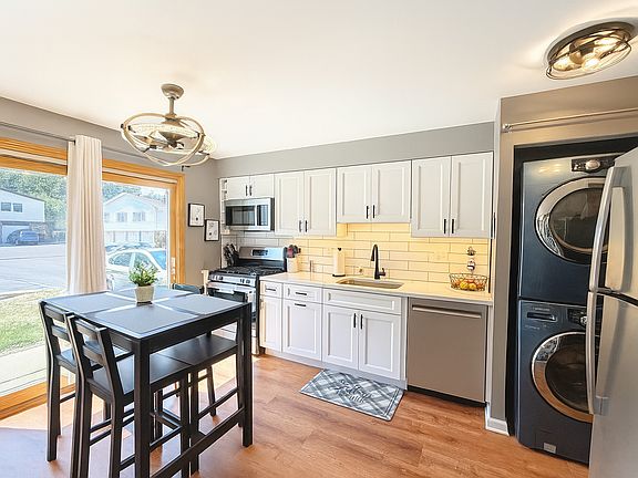 Don't miss this meticulously maintained, beautifully renovated 3-bedroom condo in the heart of Mokena that's move-in ready and packed with upgrades! Open, airy layout with built-in shelving and no carpet throughout conveniently located on the main level. The updated kitchen features granite countertops, a brand-new dishwasher (March 2025), new garbage disposal and a space-saving front-load washer & dryer conveniently located right in the kitchen along with bright sliding patio doors leading right outside. The fully remodeled bathroom includes a new shower/tub combo, tile flooring, modern vanity, glass shower door, updated lighting and fixtures. Each room has new ceiling fans, new electrical outlets and fresh paint. This property also has a new furnace and central A/C (installed November 2022) and new attic insulation to boost energy efficiency. The attached 1-car garage includes extra space for storage or garbage bins. Big-ticket items? Already handled by the well-managed HOA including new roof, gutters & soffit (installed 2024) and the HOA-approved new siding coming in 2026 (seller has email from the HOA - no special assessment). All appliances stay, making this home truly turn-key. Ideal location close to shopping, dining, parks, Rock Island Metra for a direct city commute and access to I-80. This property also has a new storm door and new outdoor porch light fixture. No FHA due to HOA not being approved and no rentals allowed in this HOA.