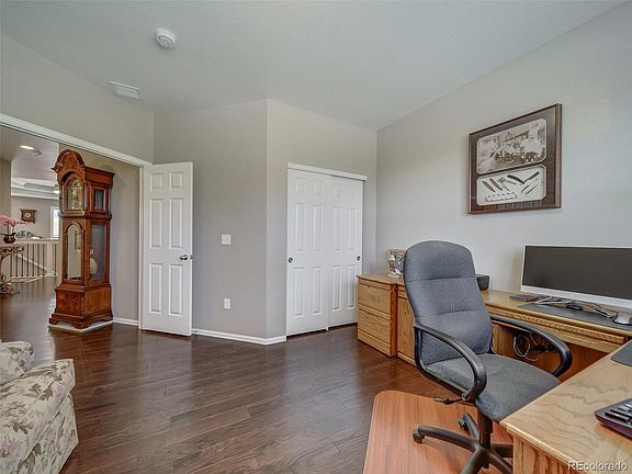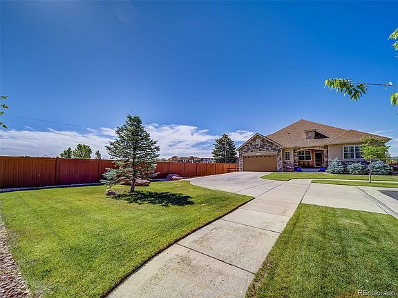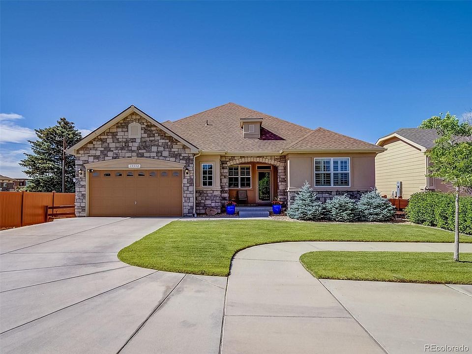 This spectacular ranch style home has a welcoming covered front porch to sit and enjoy your morning beverage. Large front yard with plenty room for kids to play! This home has great curb appeal with a handsome stucco and stone front and is located on a nice corner lot just down the street from a private neighborhood park! Meticulously cared for, this home features an open floor plan loaded with upgrades including extended wide-plank flooring in the entry, formal dining room, kitchen, family room and study/ 4th bedroom. There are gorgeous plantation shutters throughout the home. The chef's kitchen is complete with stainless steel appliances, a designer stainless hood above the gas cooktop, an island, slab granite countertops and a large pantry. The kitchen is open to a great room with a coffered ceiling with crown molding accent, ceiling fan and a gas log fireplace with mantle. There's a brand new roof that was installed Dec 2021 with high-impact shingles to potentially save on your insurance costs. The full unfinished basement leaves ample room for expansion and the builder did provide two options for finishing in which a floor plan is available. The back yard is fully fenced with a privacy fence and has a nice concrete patio with a view of Pikes Peak on a clear day. Priced to sell!! Call for a private showing today! There is also a park in the neighborhood for the kids to play!