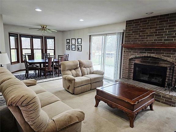 This is a once-in-a-lifetime opportunity to own a unique property! This beautiful all-brick newer style home features a large back porch that overlooks Mine Creek, which flows through the middle of the property and sits just off a blacktop paved road. The home also features a large open living/dining space with a brick wood-burning fireplace. Additionally, there are 4 beds, 2.5 baths, a walkout fully finished basement that features a second wood-burning stove, an additional non-conforming bedroom, and a mini kitchen. All bedrooms feature large closets, the kitchen has granite countertops, and all appliances stay with the home. The attached 2-car garage flows into the laundry/kitchen area. The land comprises of Approx 40 acres of secluded prime hunting land, approximately 75 acres of tillable land, and 12 acres of fenced off pastureland with a large pond. The additional outbuildings include a 48x75 implement barn w/18ft lean-to off the east side, with a 15.5 beam height and a 24x80 shop with living quarters. This property does come with solar panels-No paying for electricity on this property. At this house, the power company pays you with the power you feed back in.