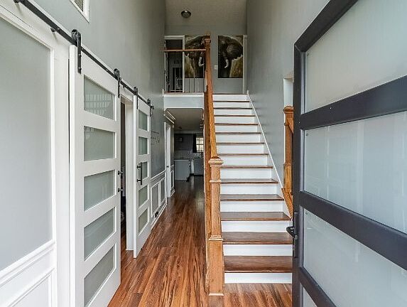 Updated kitchenStainless steel appliancesUpdated bathroomSpacious closetsHardwood flooringPrivate stairsBeautiful covered deck