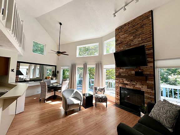 Cozy wood-burning fireplaceVersatile loftSpacious loftMultiple large decksPeaceful wooded surroundingsBright open layoutVaulted ceilings