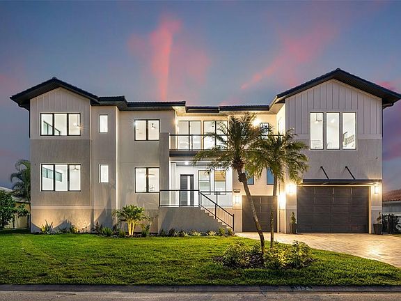 Back on market due to buyer issues.  Experience modern waterfront living at its finest in this brand-new luxury home offering 5 bedrooms, 6 full baths, 2 half baths, and a 4-car garage on protected sailboat water with breathtaking open bay views. Boasting 5,600+ square feet of living space, this custom-built residence blends timeless design with cutting-edge features in one of Northeast St. Petersburg’s most desirable neighborhoods.  Step through the grand entryway into a light-filled open floor plan featuring a 22-foot ceiling, a dramatic wall of glass doors, and seamless indoor-outdoor living with panoramic water views. The gourmet chef’s kitchen showcases top-of-the-line Wolf and Bosch appliances, a massive 16-foot quartz island with seating for six, custom cabinetry, and a walk-in pantry with prep station—perfect for entertaining.  Enjoy formal dining with waterfront views, or step outside to the resort-style deck with a heated pool, spa, and outdoor kitchen, ideal for  al fresco dining and sunset cocktails overlooking the bay.  This exceptional home features two luxurious owner’s suites (one on each level) with spa-inspired baths, freestanding soaking tubs, dual vanities, quartz countertops, and frameless glass showers. Each additional bedroom includes an en-suite bath, providing total comfort and privacy for family or guests.  Upstairs, a spacious entertainment lounge with bar, wine refrigerator, and glass-enclosed wine display opens to a private terrace with stunning views. A bonus room offers flexible use as a gym, theater, or game room, and a dedicated office on the main floor easily converts to a sixth bedroom.  Additional highlights include energy-efficient construction, impact-rated windows and doors and smart home technology with integrated lighting and sound.  Located minutes from vibrant Downtown St. Petersburg—known for its waterfront parks, dining, shopping, art scene, and walkable urban lifestyle, this home offers the ultimate luxury coastal lifestyle—combining elegance, comfort, and convenience.  Schedule your private showing today and discover the best of St. Pete waterfront living!