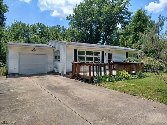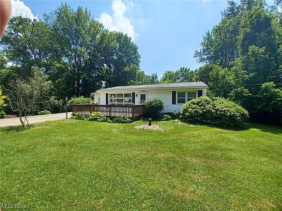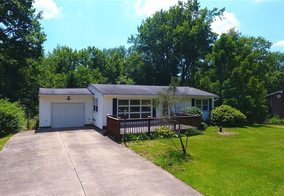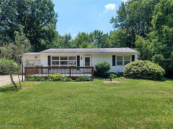 Lake lovers wanted!! This adorable ranch is located within walking distance to Brady Lake and sits on 1.01 lush acres! Talk about location! Located within a 5 minute drive to Kent State University and within 10 minutes of downtown Ravenna. Fabulous curb appeal as this ranch home is nestled among the trees with a newer concrete driveway! Front trex deck is really the perfect space to entertain family and friends! As you walk into the front door, a nice sized 20x16 ft living room opens up to the eat-in kitchen! As some extra bonus living space there is a cozy family room w/ a wood burning fireplace. All of the bedrooms have an abundance of storage with closets and built in cabinets. Hardwood floors under the carpet, newer furnace in the winter of 2022, garage door in 2022 and newer front door in May! In the rear yard there is a shed that is large enough to store your lawn equipment and all of your gardening tools. Bring your decorating ideas and really make this home yours!