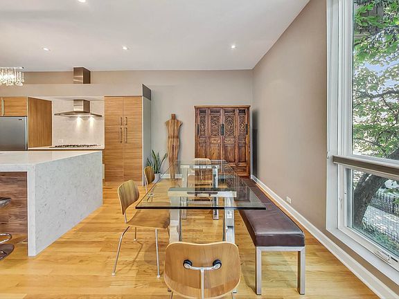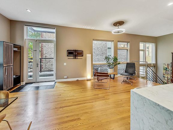Welcome to this stunning 3-bedroom, 3.5-bathroom duplex down that truly feels like home! The open floor plan is highlighted by floor-to-ceiling windows that bathe the space in natural light. The kitchen has been beautifully upgraded with a sleek new island featuring a waterfall edge and matching backsplash, perfectly complementing the professional series appliances and European cabinetry. This culinary space is both functional and stylish, making it the heart of the home. You'll find two ensuite bedrooms, plus a third bedroom and bath, along with a cozy family room. Custom closets in the bedrooms, complete with modular shelving, maximize your storage space, ensuring everything has its place. Enjoy the convenience of a private garage plus an additional garage space equipped with an electric car charger. This is the only unit with its own secure front entrance and side exit, offering a fully fenced area perfect for a dog run and grilling. Step up to the large shared garage roof deck, ideal for outdoor entertaining. Indulge in the luxurious master bath, complete with a steam shower, while all bathrooms feature deep soaking tubs for the ultimate relaxation. The home also includes great closet space, an additional storage closet, and a wine cellar, perfect for your collection. The on-demand hot water system ensures you'll always have hot water when you need it. Located just two blocks from the Armitage El, three blocks from The 606, four blocks from the heart of Bucktown, and right around the corner from Ipsento, this home offers the perfect blend of comfort, style, and convenience.