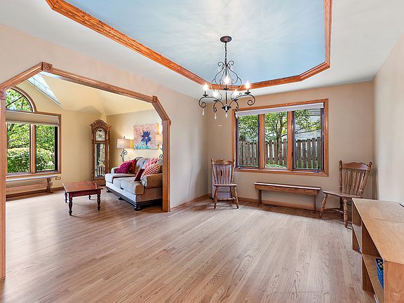 Welcome to your dream oasis! This stunning and meticulously maintained 3-step ranch nestled on approximately 3/4 acre offers 4 spacious bedrooms and 3 full bathrooms. The exterior boasts beautiful Hardie board siding, newer soffit and fascia, and Timberline High-Definition shingles. Dive into the refreshing inground saltwater heated pool, complete with a waterfall, jacuzzi steps, LED lighting, and top-of-the-line Hayward equipment, all controllable via a convenient mobile app. Step inside this smart home, equipped with smart outlets, switches, and a thermostat, ensuring ultimate convenience. Natural light floods the living room with its vaulted ceiling and the dining room with its tray ceiling, creating a warm and inviting atmosphere. The updated kitchen is a chef's delight, featuring Tri-Star cabinets, some with glass doors, an island with a breakfast bar, quartz countertops, stainless steel appliances, can lights, under-cabinet lighting, a pantry cabinet and closet, Schaaf patio door and a skylight. The family room offers a cozy ambiance with a vaulted ceiling and brick fireplace. The master bedroom is a true retreat, complete with a walk-in closet, a wall closet, and a luxurious ensuite bathroom. The master bath has been thoughtfully updated with Tri-Star cabinets, quartz countertop, Euro tub with jets, a separate shower, and a double bowl vanity, creating a spa-like experience. Bedrooms 2 and 3, along with the master bedroom, showcase 3/4" Bruce hardwood floors. A full bathroom with a shower is conveniently located off the kitchen, and the hall bathroom includes a tub and skylight. The basement is a versatile space, complete with a rec room and a crawl space for additional storage. The attached 3+ car garage features CHI Carriage insulated doors, a Chamberlain myQ mobile control system, and direct access to the backyard. Outdoor living is elevated with a large paver patio, resealed in 2024, that gracefully extends around the pool. Both the front and side walkways are adorned with paver bricks, adding to the home's charm. The professionally landscaped yard includes a sprinkler system. Additional features of this exquisite home include a Generac whole-house generator, a furnace and A/C with an infinity controller and mobile access control system, a 75-gallon hot water heater, rust-proof basement windows, and blown-in insulation in the attic. Don't miss the chance to make this home your own! Your dream lifestyle awaits!