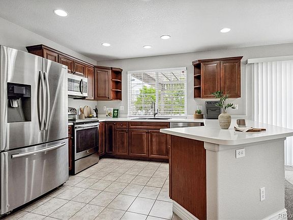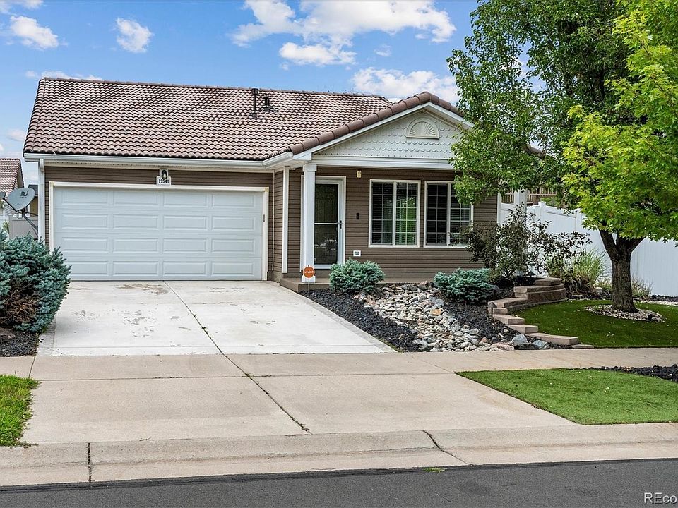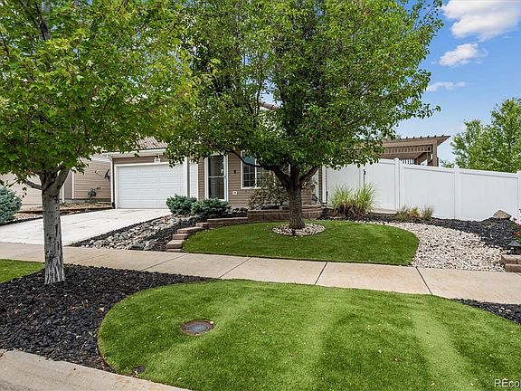 RANCH STYLE LIVING NEVER FELT SO GOOD WITH A SMART FLOOR PLAN, UPDATES GALORE AND LOW MAINTENANCE OUTDOOR SPACES! CONVENIENT TO DIA, SHOPPING, PARKS AND MORE! Perched on a corner lot with curb appeal galore, this low maintenance ranch style home is a rare, yet affordable find in today’s market! The exterior has vinyl siding and a concrete tile roof, both of which have great longevity and are easy-care options. It is also xeriscaped with turf, a water feature and a mix of other beautiful stones, bushes, trees and more! The side yard has one large patio, partially covered with a pergola. Boasting a built-in seating wall and a built-in grill, it’s a sight to behold! Open the door to a spacious and well-thought-out floor plan that shows like a model! With all new carpet, paint and window coverings throughout, it is sharp! The sizable formal living and dining rooms are adjoining and interact nicely with the kitchen. Stainless steel appliances include a brand new dishwasher, and they nicely complement the cherry cabinets. There’s room to sit at the breakfast bar and chat with the cook or do homework. The kitchen is convenient to the mudroom/laundry room so groceries and laundry aren’t a long haul! The bedrooms are separated from the living