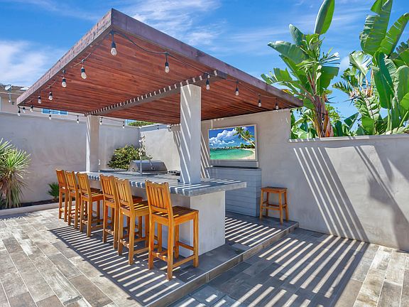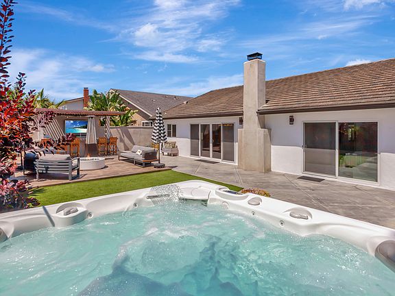 Coastal luxury in the heart of Huntington Beach! This newly renovated three bedroom two bath boasts an unmatched outdoor living area complete with a XL bar and kitchen including gas BBQ, sink and fridge with a firepit, weatherproof TV and jacuzzi. Step into two distinct living rooms and a separate dining nook with vaulted ceilings and an open floorplan. The kitchen includes all modern appliances with quiet technology. Luxury vinyl floors, meticulous tropical landscaping and ample storage. No detail was spared as other high end amenities include a lifesource water softener and EV charging port. This highly desired HB neighborhood benefits from the ocean climate and is only a quick bike ride to the beach! This home can be rented partially furnished Renter is responsible for all utilities (water & trash, electric, and gas) Not renting to multiple parties