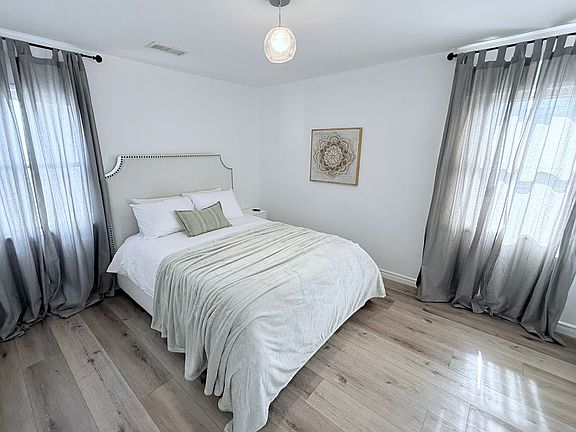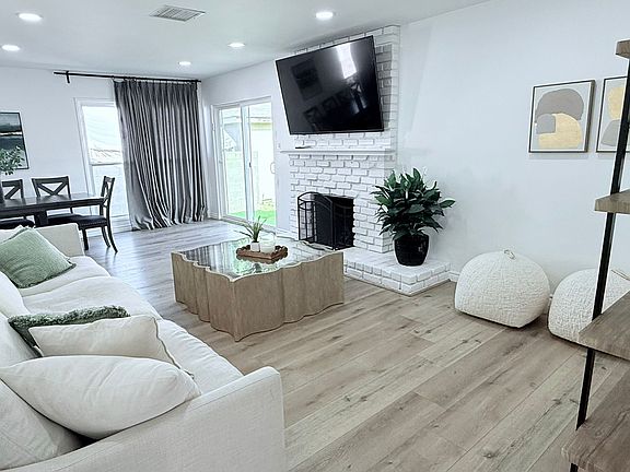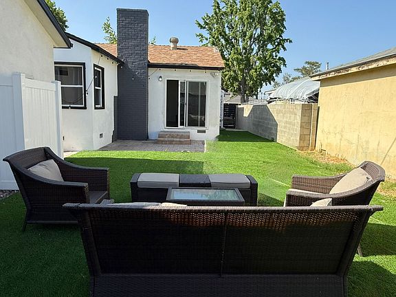 Located in the heart of Reseda, San Fernando Valley, this 3-bedroom, 1-bath home offers a peaceful retreat in a busy area. The single-story fully furnished house features a driveway for two cars, three cozy bedrooms (two with queens, one with a full bed), each with a TV. The living room boasts a comfortable sofa and TV, while the dining area seats five. Fully equipped kitchen, washer/dryer, and a backyard with seating for five complete this inviting space. Owner pay fix utilities.