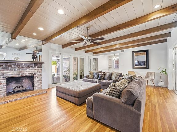 Welcome home to this inviting 4-bedroom, 3-bath Northridge residence offering 1,900 square feet of comfortable living space. The open layout features a spacious living room with wood-beamed ceilings, hardwood floors, and a charming brick fireplace. The kitchen offers ample cabinetry, tiled counters, and built-in appliances, flowing easily into the family and dining areas—ideal for gathering and entertaining. The primary suite includes a private bath and generous closet space, while secondary bedrooms are bright and welcoming. Outside, enjoy a large covered patio and sparkling pool—perfect for relaxing or hosting friends and family. With an attached two-car garage, central air and heat, and a great Northridge location near parks and schools, this home combines comfort, character, and everyday convenience.