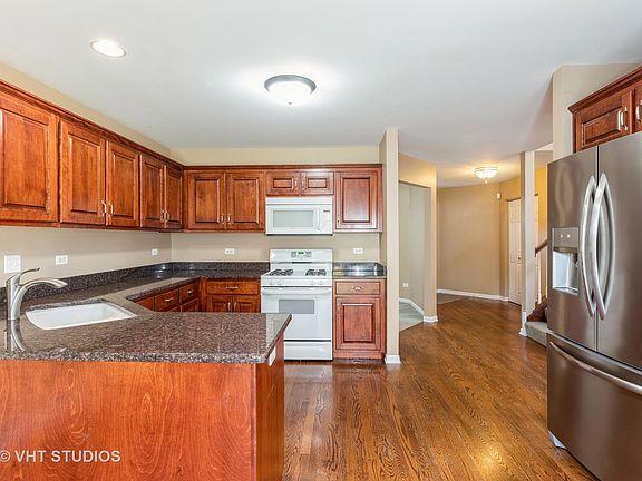 Get in before the holidays! Huge former builder's model! 3BR, 2.1 townhome ready to move right in! Fabulous 2 story great room w/FP opens to KT w/breakfast room, birch cabs, wood flooring, granite countertops. An office/play room, laundry & guest bath finish off the first floor! 2nd floor features generous MBR w/WIC & MBA! 2 addtl BR's share the hall BA. All baths w/neutral cer tile! Huge full basement w/finished rec room great for parties adds additional living space sq footage. Hurry! Occupancy at closing!