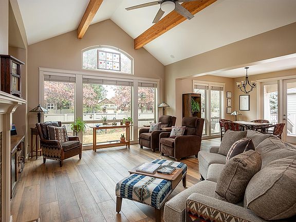 Beautiful light filled Hendrickson single level home in River Rim! Huge windows in the living room and primary bedroom open to a lovely fenced backyard. The home backs to the street, open space and Wildflower Park, giving it a much more spacious feel. The home has many upgrades such as new luxury vinyl plank floors, granite counters in the kitchen and bathrooms, new roof in 2020 and exterior paint in 2019. Open floor plan with high ceilings and nice separation between the primary suite and guest rooms. Extra large tandem garage is perfect for shop space or room for all your outdoor gear! Just a short walk to the canal and river trail access as well as the natural meadow area. Don't miss this amazing house!