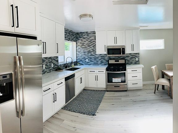 Modern Place with large living space with high ceilings, custom kitchen with quartz countertops & glass backsplash, floors are bright luxury vinyl plank, his & hers separate vanities, powder room in living area, two bedrooms, onsite storage space, driveway that fits multiple cars, new AC/Heater/Water Heater/LED lighting with dimming, large back/side yard that is approximately 80 ft x 40 ft. Home is an ADU "guesthouse" that rivals any new building...great alternative to condo or townhome. Both the ADU and the main house are currently for rent. Owner to pay for gardener Tenant to pay for utilities