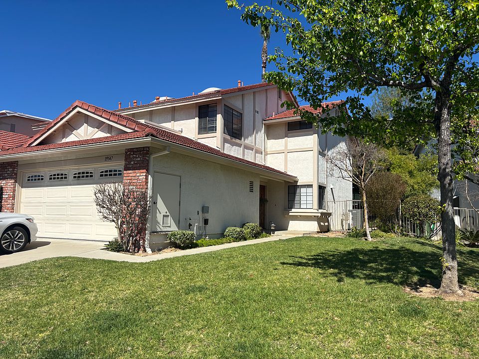 24- hours Guard Gated Porter Ranch Estates Property. Spacious Duplex style Home with only 1 common wall & feels like a single family home. the huge master Bedrooms with their own full Bathrooms and closets. The other 2 bedrooms share one bath ,all 3 bedrooms are upstairs .This home is Open and Light. The Kitchen upgraded new countertop,newer stove, dischwasher and refrigerator , also an eat-in Breakfast Area. There is a Dining Area close by with a view to the backyard. Floor to Ceiling Firephilace in the Living Room highlights the Vaulted Ceiling in this room. Inside Washer & Dryer. area. Double Car Attached Garage with inside directly. Ready to move-in condition.Also Community pool, spa, tennis courts, playground and more. Award winning schools, Huge park nearby and new "Vineyards at Porter Ranch Shopping Center with Whole foods, Habit, movie theater and many more stores.only 10 minutes away to Sierra canyon private school ,MUST SEE IT!! Owner pay for HOA and Gardner