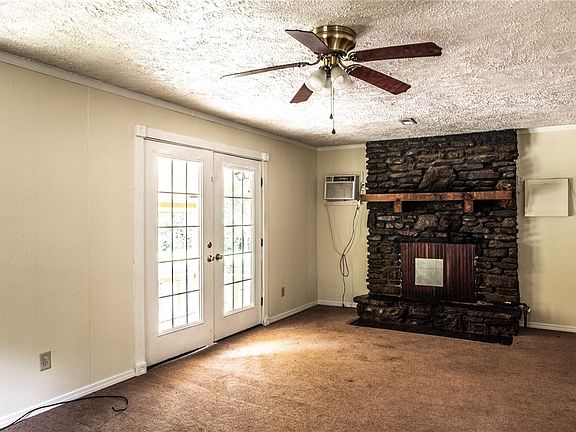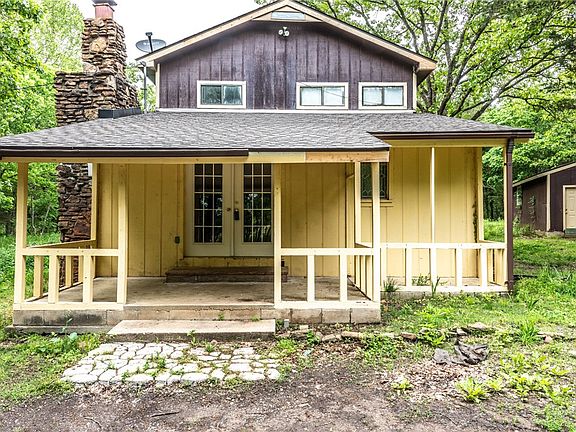 Sitting on 5.00 partially wooded acres, this 2BD/1.5BA home features a spacious covered front porch, carpet throughout living room, propane fireplace, abundant cabinetry in kitchen, formal dining room, second level large Master Bedroom & additional bedroom, back covered patio, 24x24 shop, 7x7 storage building, beautiful wet weather creek, hurry & see this private home! BONUS! NEW HEAT SYSTEM!