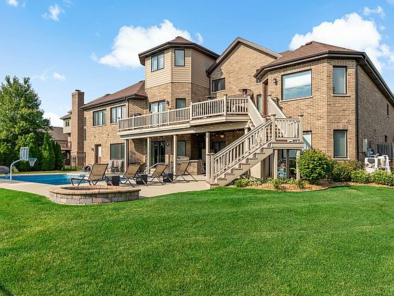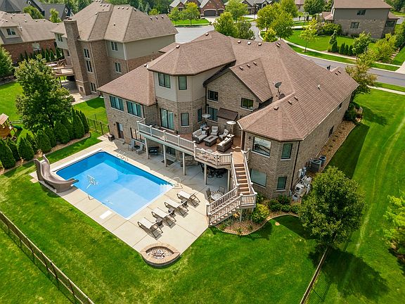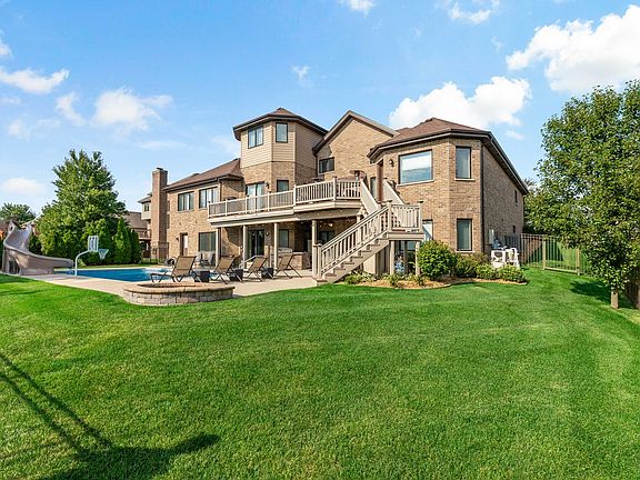 Welcome to luxury living in the prestigious "Preserves of Foxborough" Neighborhood! This stunning property offers over 6,300 sq. ft. of finished living space, featuring 8 bedrooms, 6.5 bathrooms, and a 4-car garage. The fully fenced backyard oasis is perfect for entertainment, boasting an in-ground pool with a slide, a built-in grill, a gas fire pit, a large deck, and a patio with a ceiling fan. Inside, the main floor showcases beautiful hardwood floors throughout, a cocktail lounge with a wine fridge and wet bar, a spacious kitchen with a breakfast bar and walk-in pantry, and an open concept dining and family room. The sunroom, located directly off of the dining room, is filled with natural light and provides a perfect spot for relaxation. The spacious master bedroom includes a his and hers master bath with a private water closet, whirlpool tub, and walk-in shower, a large walk-in closet, and offers direct access to the backyard deck. There are an additional 3 bedrooms on the main floor, 2 of which include full en suite bathrooms, as well as a powder room and full laundry room. The lofted second floor includes a large den area with views down to the family room, 2 bedrooms, and a full bathroom, along with walk-in attic access. The massive walk-out basement features ceramic tile flooring throughout the open floor plan, a full bar including a sink and mini fridge, a work out room, an unfinished storage room, and an additional full kitchen. The 2 bedrooms in the basement are connected by a Jack-and-Jill style full bathroom and there is an additional full bathroom with extra laundry and backyard access, perfect for days by the pool. This home is equipped with central vacuum connections throughout the 2nd and main floor, large walk-in closets in the majority of the bedrooms, and backs up to a tranquil wooded area with no backyard neighbors, providing ultimate privacy. Perfect for a large family or related living, this home is a must-see!
