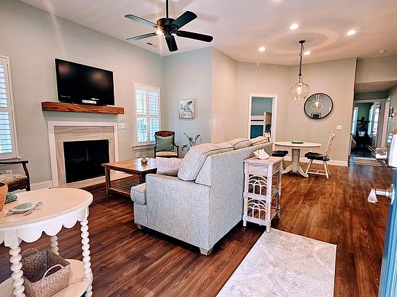 Custom-built just 5 years ago, this fully furnished home offers effortless coastal living with every upgrade imaginable. Featuring 2 bedrooms, 2 bathrooms, and a dedicated office, the open floor plan showcases tall ceilings, luxury vinyl plank and tile flooring, and a cozy gas fireplace with custom mantel and hidden media storage.