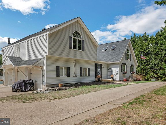 If you’re dreaming of the rural lifestyle but still want to be close to amenities such as restaurants, retail, and services, then THIS IS THE ONE! This spacious, custom-built contemporary home rests on 5 private acres in the desirable Prince Frederick area and offers freedom from homeowner association (HOA) fees and restrictions! The spacious home features 2,672 square feet of living space, including five generously sized bedrooms and two and a half bathrooms. The kitchen is particularly impressive, equipped with granite countertops, stainless steel appliances, a large island, 2-story ceiling, skylights, and ample space for dining. The main floor has two bedrooms, one of which offers a private full bathroom, a beautiful family room with lots of windows, a half-bath, laundry room, and kitchen/dining area. The remaining three bedrooms are located on the upper levels and include a jack-and-jill bathroom between the master bedroom and another bedroom that offers its own private entrance from the outside as well. The 5th bedroom upstairs showcases vaulted ceilings and skylights, dormer closets, and is accessible via its own private staircase that is open to the 2-story kitchen. The 3-car garage provides plenty of storage space for vehicles and other items. The expansive side parking area will accommodate RVs, additional vehicles, and plenty of outdoor toys. There is more than enough room to add barns, sheds, other outbuildings, and detached garages! The in-ground pool has depths ranging from 3 to 10 feet and includes a diving board and slide for lots of summer fun! The freshly painted rear deck extends along the length of the home and features an awning system that provides shade, and the patio areas provide additional space for outdoor entertaining. The absence of an HOA grants owners unlimited freedom to utilize the property as they desire. Always verify with the County but this property would be ideal for home-based businesses, livestock, horses, and other activities not normally permitted if there is an HOA. Experience the rural feel of a country property while still being conveniently located near the Prince Frederick Town Center. Within a reasonable commute to DC and Annapolis this property offers all the features of rural living combined with easy access to shopping and services!