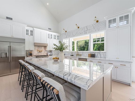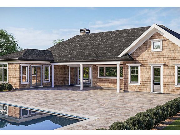 MOVE IN OCTOBER 2025!! Welcome to the Laurel Collection by Marrcon, a showcase of modern luxury in the heart of Southold. Photos from same model next door. Set on .80 acres, this newly built 3,200 SF one story home with soaring ceilings offers 3 bedrooms and 3.5 baths, blending timeless coastal design with top-tier craftsmanship. Large basement with egress and walkout can be finished to suit and extra bedrooms can be added if needed. The home’s exterior features Eastern White Cedar Shingles in Roseate Tern, GAF Timberline roofing, and stone accents by Casa di Sassi. Inside, 9’ ceilings, Marvin Elevate windows, and wide-plank white oak floors create a bright, open atmosphere. The kitchen is a standout, with custom inset cabinetry by Pennsylvania Dutch Custom Cabinetry, Napa marble countertops and backsplash, Monogram appliances, wine fridge, and a large walk-in pantry. The great room includes a 46” linear gas fireplace and connects seamlessly to outdoor living. Enjoy a 20x40’ heated gunite pool, ICE Blue marble patio, and over $140K in professional landscaping. Additional highlights include a 2-car garage, spacious laundry room, full 9’ basement with walkout, and Sonos/CAT5 pre-wiring.