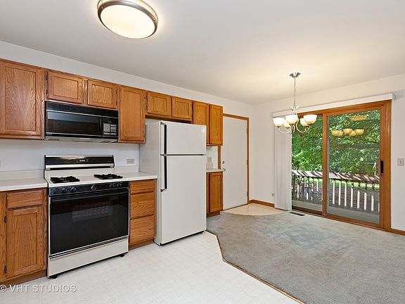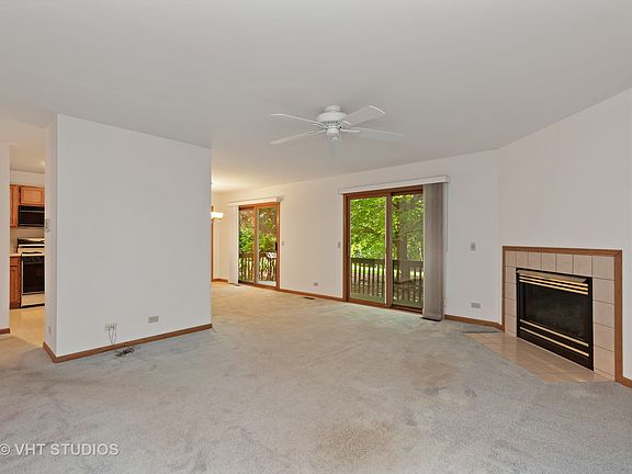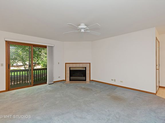 Rarely available first floor two bedroom, two bath condo with direct access to attached garage! Living room with corner gas log fireplace and sliding glass doors to freshly stained wood deck. Eat in kitchen with oak cabinetry, all appliances, pantry and sliding glass doors to deck. Laundry/utility room in unit with extra cabinets, includes washer and dryer. Interior has been freshly and professionally painted in warm neutral tones. Private deck with maturely landscaped views. Very convenient location close to Big Timber Metra Station, Advocate Sherman Hospital, Randall Rd corridor and I-90 access! Hurry, this one won't last!