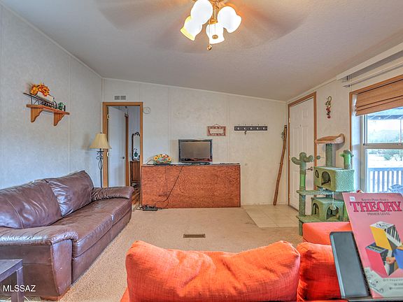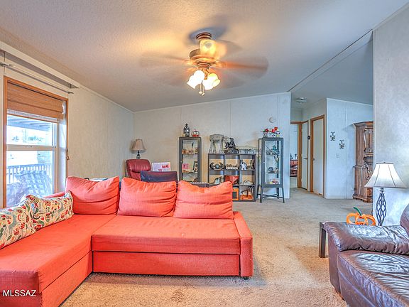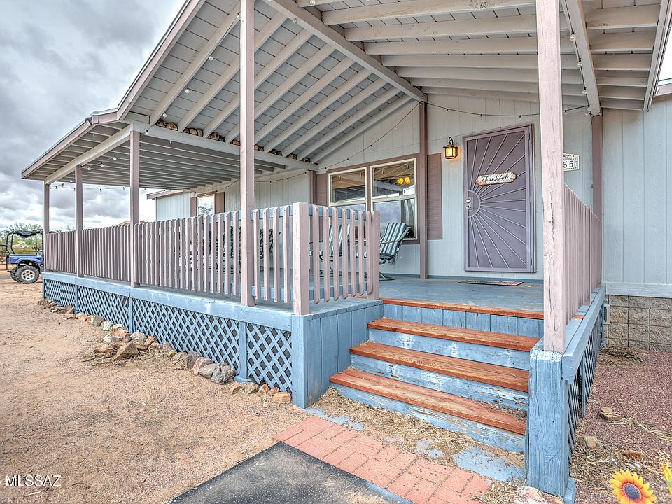 Experience peaceful desert living in this well-cared-for 2002 manufactured home, designed for outdoor enjoyment with two large covered decks--a spacious 33' x 12' front porch and a 30' x 12' back deck with full-length awning, perfect for relaxing or entertaining year-round.Inside, the home offers a comfortable layout with a split floor plan, ceiling fans with lighting in all bedrooms, and a functional kitchen with a center island. The property also features a recently replaced HVC system and upgraded exterior walls with improved insulation.With ample space for horses, equipment, and recreational toys, this home supports a true rural lifestyle while keeping you close to iconic west-side destinations like the Arizona-Sonora Desert Museum and Old Tucson.
