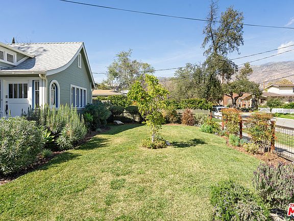 Set behind a custom fence gated entrance, this home blends historic charm with warm contemporary style. This beautifully maintained 1928 Storybook Tudor Revival bungalow with breathtaking mountain views welcomes you in with its picturesque gabled roof, charming arched windows, and lush, thoughtfully landscaped yard. An idyllic retreat inside and out. Inside, original architectural details shine, from elegant arched entryways to intricate ceiling moldings. Sunlight pours through large character-rich windows illuminating the warm refinished hardwood floors and curated design touches. A stunning living room, anchored by a functional gas fireplace, offers an expansive space to unwind. A bright formal dining room is spacious enough for larger gatherings while remaining warm and cozy for intimate family meals. The kitchen is fresh, pristine, and bright, blending vintage charm with modern updates. Equipped with stainless steel appliances and ample cabinetry -including a beautiful built-in buffet- it offers both style and function. The airy kitchen flows into a light happy laundry room that also features additional pantry storage. A gorgeous bathroom flaunts the dreamiest arched curves, designer tilework, stylish fixtures, and refined finishes including limestone textured walls. The large premiere bedroom is a peaceful retreat, exuding comfort and style. The second bedroom, currently used as a home office and guest space, is equally tranquil. Both rooms feature large closets, contemporary ceiling fans, and new windows that frame beautiful backyard greenery. Drenched in natural light, each room feels effortlessly inviting, with a layout that balances openness and privacy. Handcrafted built-ins throughout make for a flawless flow of functionality and aesthetic. Dimmable lighting allows for customizable ambiance. Outside, the expansive private backyard oasis is a dream. Vista views. Mature trees create a natural canopy of shade, a spa with custom decking and storage offers soothing exhales. There are multiple outdoor conversation and connection areas, including a picturesque pergola-covered deck, that provide the perfect vignettes for relaxing or entertaining. The front porch, accented with a chic designer tile, is an ideal spot for morning coffee and sunset conversations with mountain views. The sprawling front yard is home to an array of plants and fruit trees, including herbs, key lime, Meyer lemon, and ruby red grapefruit. The vast attic space holds potential for conversion and added value. The spacious detached two-car garage completes the property, currently used for storage and a workshop while still accommodating a vehicle. It also presents a great opportunity to create a flexible artist's space or ADU. This gorgeous, peaceful home has been thoughtfully adored and features numerous upgrades, including: copper plumbing, new roof, new HVAC, new double-paned thermal windows and restored original windows, tankless water heater, gas line to fireplace, fresh interior and exterior paint, sprinkler system, nest, keyless entry and alarm. Nestled in a neighborhood where you can still see the stars at night, this area offers a charming small-town feel while being just minutes from all that Pasadena has to offer, Altadena, South Pasadena, Highland Park, and DTLA. With a 95 walk score, you're steps from local mom and pop markets, shops, and restaurants. A short bike ride or drive up Lincoln takes you to an array of fun spots: coffee at Stumptown, gelato and handmade pasta at Ferrazzani's Italian Market, tacos from HomeState, and Kismet- just opened! This home is truly a gem offering history, beauty and a sense of community in one remarkable package. This home is on a census track that qualifies eligibility for the Homerun program, offering no PMI with 5% down at a 6% rate plus up to $7500 in closing cost credits.