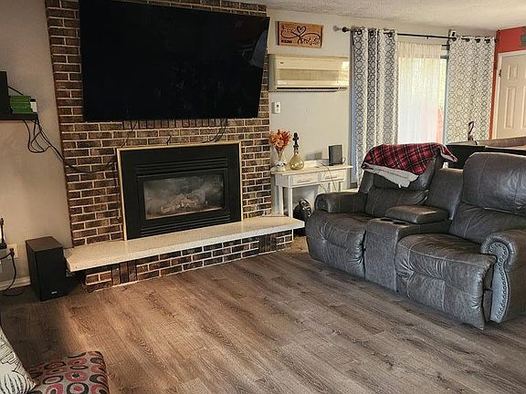 Don't miss out on this Charming 4 bedroom, 2 and 1/2 bath home! This home is the one you have been waiting for with a big, beautiful kitchen, open floor plan, natural light from skylights, big master bedroom with attached master bath, and his and her closets! Home also includes pool table and a hot tub! Kitchen features plenty of cabinets, custom tile and newer kitchen counter tops. Kitchen opens up to a large living room with gas fireplace. Dining room has a huge picture window, and living room has glass doors that lead to the fenced in backyard. Backyard has mature trees and a retractable covered awning to enjoy those beautiful Idaho nights. Main floor also has a second bedroom and 1/2 bath. Downstairs you will find 2 more bedrooms, a full bathroom, and a storage room with plenty of shelves. Large game room with cozy 2nd gas fireplace (pool table included) and theater room. Downstairs you'll find the laundry room, along with a water softener and a newer electric smart water heater. 2 car garage with plenty of shelving for tools, along with space next to the house for your RV. Home is centrally located next to shopping and the movie theater. Call to schedule your own private showing and make this home yours today!