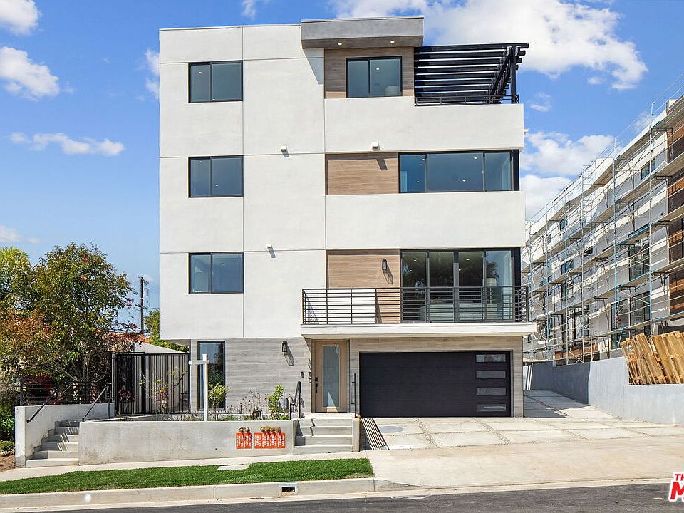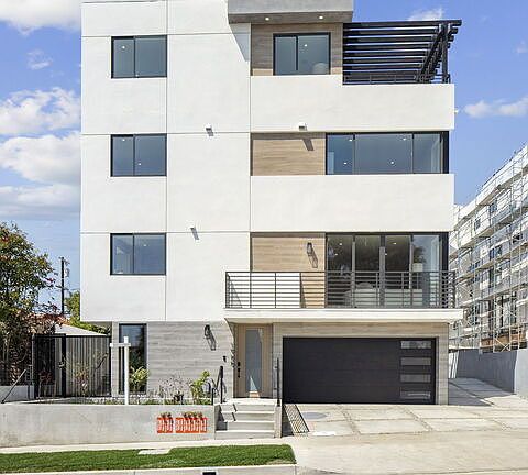 Newly constructed and architecturally striking, this 4 bed, 5 bath residence in the coveted Crestview neighborhood offers an exceptional blend of modern luxury and everyday functionality. Designed with soaring ceilings, oversized windows, and high-end finishes throughout, the home delivers an airy, light-filled living experience. The open-concept layout centers around a chef's kitchen with marble countertops, a generous center island, and fully upgraded KitchenAid appliances including a brand-new refrigerator, double oven, microwave, dishwasher, and garbage disposal. Custom cabinetry flows seamlessly from the kitchen to other areas of the home, while a double sink adds to the kitchen's practicality. Each spacious bedroom offers ample closet space, including walk-ins with shelving, and spa-inspired baths. The primary suite serves as a serene retreat with dual vanities, a walk-in shower, and a private balcony boasting stunning views of the iconic Hollywood Sign. Additional features include hardwood flooring in a stylish gray tone, a built-in speaker sound system, in-home washer and dryer, and a state-of-the-art security package with full camera coverage and Ring alarms for both the home and garage. A private two-car garage is equipped with a Tesla-ready EV charging station. The private basement office, with its own separate entrance, provides an ideal workspace for professionals or remote workers. Outdoor living is enhanced by a sprawling rooftop deck, perfect for entertaining or relaxing. Set in a peaceful, pet-friendly neighborhood, the property is ideally located minutes from Beverlywood, Beverly Hills, Culver City, major hospitals, houses of worship, shopping, dining, and the newly built subway/train line. With easy access to multiple freeways, this home offers top-tier upgrades, unmatched convenience, and flexible living in the heart of Los Angeles.