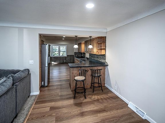 Welcome to this beautiful 5 bedroom, 2 bathroom Faribault rambler on the edge of town! The front of the home features a small patio area and access to one of the backyard decks! Upon entering the home, you are greeted with a cozy living room featuring large windows for ample natural light. The walk-through kitchen features stainless steel appliances and a breakfast bar area. Brand new LVP flooring on the main and new paint throughout! The dining room also features large windows overlooking the backyard, and includes access to the upper deck. Three bedrooms on the upper level with a recently updated full bathroom featuring dual sinks. The lower level includes a large family room space with a basement walkout to the backyard. There are two bedrooms and a 3/4 bathroom on the lower level, with one bedroom featuring a walk-in closet. The large laundry room includes extra storage space and a laundry sink. The backyard of the home is partially fenced in. The dog kennel, play structure, and above-ground pool are included in the sale of the home! The deck behind the two car garage was recently added and provides ample space for outdoor entertainment! Beyond the fenced-in area there is a new retaining wall, storage shed, and green space. New roof in 2021, recently updated flooring, bathrooms, and light fixtures- this home is move-in ready! Located close to shopping, parks, Faribault area lakes and more!