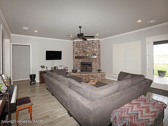 Come Home To This Beautiful 5 Bedroom / 3 Bath / 2 Car Garage Home In Legacy Ranch, Bushland, TX. The open concept floor plan makes entertaining friends & family easy. Entry leads to spacious living area with wood burning corner fireplace. Dining space is open to kitchen & living area. Kitchen has awesome granite & subway tile. Raised bar has room for additional seating. 4 burner gas cooktop ,stainless appliances & pantry are added plus. Master retreat has 2 sink areas ,shower & soaking tub plus walkin closet. Bedrooms 2 & 3 share full bath. Bedrooms 4 & 5 share a full bath. 5th bedroom makes great mother in law quarters & is wired as a media room. Mud bench located by garage door. Wood tile floor in living areas, bathrooms & utility room. Blinds throughout. Enjoy space between neighbors!