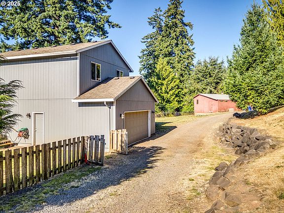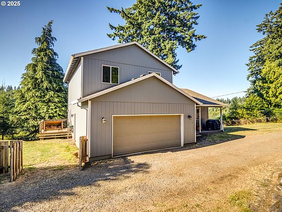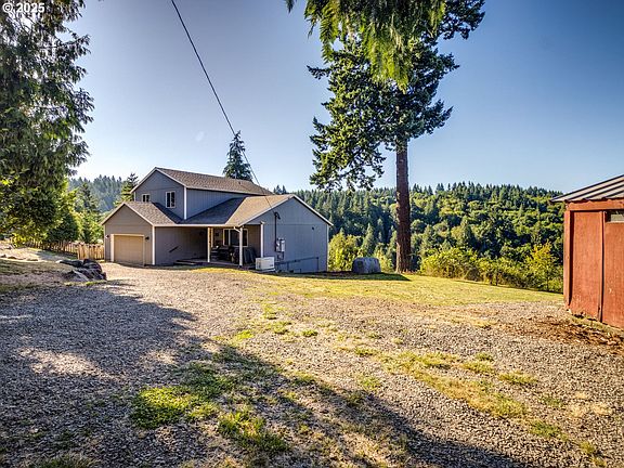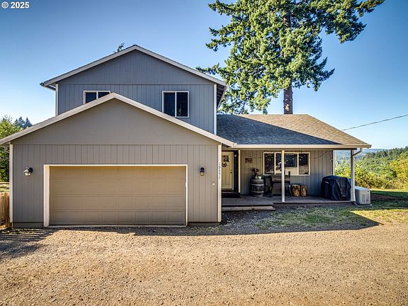 This charming traditional-style home offers ample space and breathtaking vistas. The expansive family room features a cozy woodstove and a sliding door that opens to the deck, perfect for enjoying the outdoors. The kitchen showcases elegant granite countertops, an undermounted sink, and modern stainless steel appliances, making it a delightful space for culinary adventures. Both bathrooms are also adorned with granite counters, adding a touch of luxury. Enjoy captivating valley and territorial views that stretch southward towards Silver Falls State Park. The property includes two outbuildings: one approximately 20 x 40 feet, along with a loafing shed situated in a separate, cross-fenced area designed for animals, currently accommodating goats. Randall Creek is conveniently located near the southeast corner of the property. For heating, a "low mileage" propane furnace is available, although the seller primarily relies on the woodstove for warmth. The new propane-powered Generac backup generator was installed 1/2025 provides safety and peace-of-mind. This home is a true sanctuary, offering both comfort and the beauty of nature.