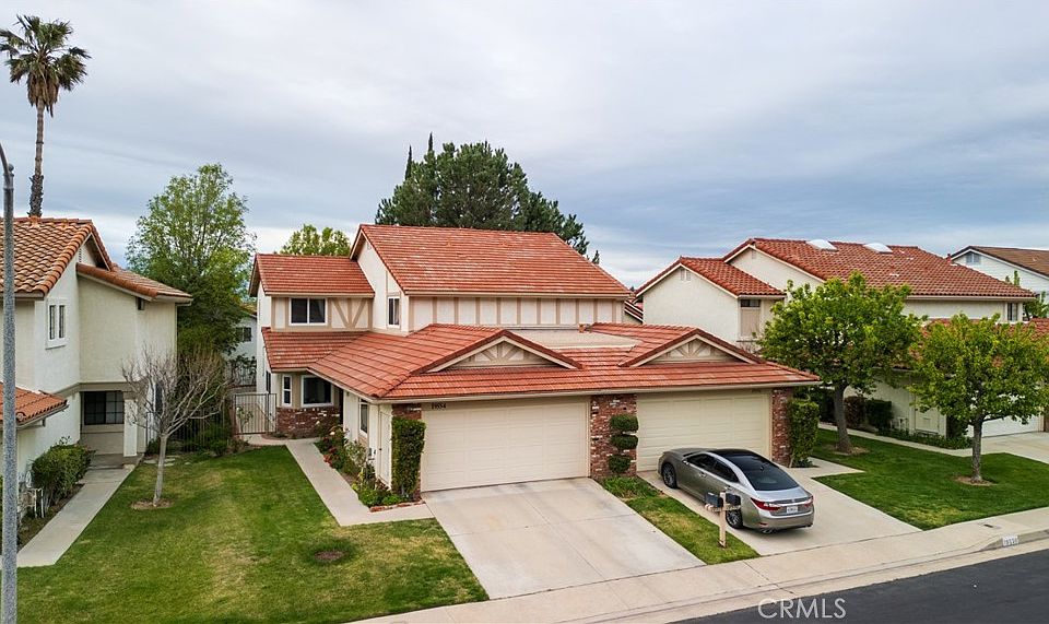 This charming home is nestled within the prestigious guard-gated Porter Ranch Estates community. This 4-bedroom, 3-bathroom home offers 1,746 square feet of comfortable living space, providing both elegance and functionality. Upon entering, you'll be greeted by an airy interior with recessed lighting and a living and dining room that leads directly into the backyard. The first floor also has a fireplace creating a warm and inviting atmosphere and the renovated kitchen is tastefully done which includes, stainless steel appliances. 1 bedroom and 1 bathroom is located downstairs, with 3 of the bedrooms and 2 bathrooms located upstairs. The primary suite has a beautiful south facing view and the bathroom boasts two sinks.