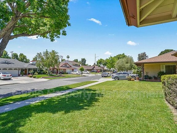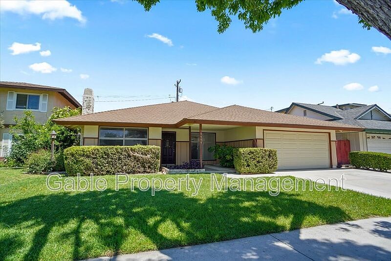 Welcome to this charming and spacious single-story home offering 5 bedrooms and 2 bathrooms, nestled in a well-maintained and desirable neighborhood. From the moment you arrive, you'll appreciate the lush landscaping and excellent curb appeal. Step inside to find fresh paint and brand-new flooring throughout. To the left, a cozy family room features a stylish tiled fireplace and a large window that fills the space with natural light. The home also boasts a formal dining room and a spacious living room with a ceiling fan, perfect for entertaining. The kitchen is both functional and inviting, offering ample wood cabinetry, white accents, a stainless steel refrigerator and dishwasher, a double oven, and a built-in microwave. The kitchen opens seamlessly to the living room, creating a comfortable flow throughout the home. The two bathrooms are thoughtfully updatedone features a walk-in shower and vanity, while the second includes a tub/shower combination and vanity. All five bedrooms are generously sized, ideal for families, guests, or home office needs. Enjoy indoor-outdoor living with a sliding glass door leading to the private backyard, which includes a covered patio, a sitting area, green lawn, and a convenient storage shed. A two-car attached garage completes the home. Located close to top-rated schools, shopping, dining, and parks, this property is super clean, move-in ready, and a must-see!