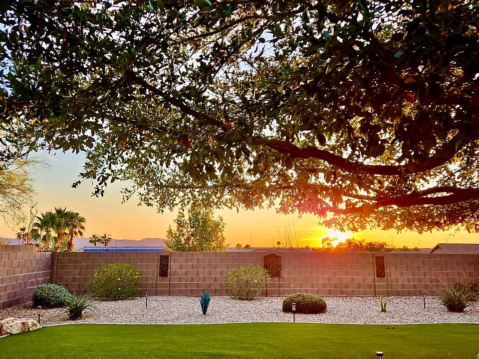It's all about outdoor living! Perched on an elevated lot with unobstructed mountain and sunset views, this property delivers the kind of backyard you'll actually brag about - blissfully low maintenance with artificial turf & mature trees. Inside, the immaculate 2BR+den/2BA retreat feels fresh and modern with granite finishes, modern shades, updated roof and HVAC. Clean & crisp throughout - this nearly 1,800'sqft home is move in ready. Located in Ventana Lakes, a premier 55+ community offering shimmering lakes, scenic walking trails, pools, tennis and pickleball courts, and endless ways to stay active. This property is a gem, fully modern & again......it's all about the elevated outdoor space. Move in, pour a drink, and start living the good life - no maintenance required.