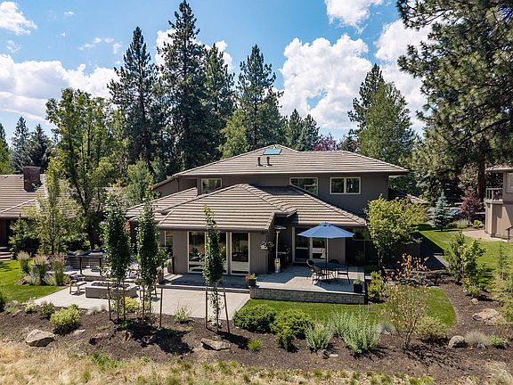 This NW Contemporary home features bright, light filled rooms and expansive main level living with plenty of large spaces inside that flow effortlessly to beautiful new outdoor entertaining spaces. Walls of windows, exposed beams & trusses and stunning views of the 17th fairway, green and lake are featured throughout the home. The private main level primary wing features a fully remodeled bathroom, private patio and new custom Finnleo dry/steam sauna. Upstairs offers two additional bedrooms and bathrooms plus a generous family room with built-ins and a second fireplace. The oversized 3 car garage features extensive storage and EV chargers. As you enter the property, enjoy the newly re-landscaped front yard, new driveway and renovated private courtyard, which is on view from large main level office. Enjoy the quality of this Sun Forest custom home in one of the best locations in Broken Top, w/ convenient access to the club, restaurant, pool, pickleball, park, tennis court & 1st Tee!