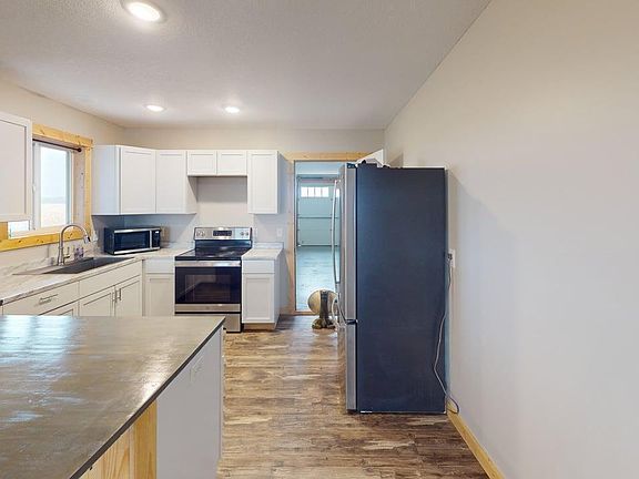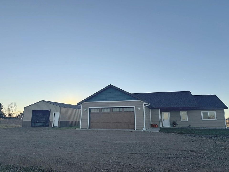 Built in 2022, this beautiful 4-bedroom, 2-bath single-level home sits on a spacious acreage lot in Mora! Enjoy an open-concept kitchen and living area featuring modern stainless steel appliances and a convenient breakfast bar. The open layout creates a warm and welcoming atmosphere, ideal for everyday living or entertaining. Comfort is ensured year-round with in-floor heating and ductless mini-splits for both heating and air conditioning. Enjoy an attached 2-car garage plus a spacious 23x64 pole building—perfect for storage, hobbies, or a workshop. Sellers will be adding sod to part of the yard yet this month. Set up your showing today!