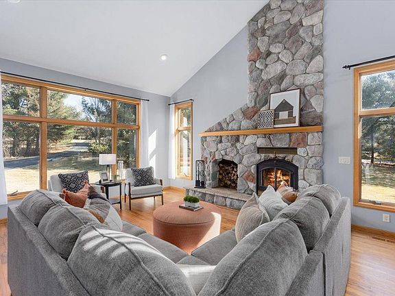 Nestled on a picturesque 3-acre tree-covered lot, in the desired Pine Cliff neighborhood of Somerset, is this stunning 4-bedroom, 4-bath home with the perfect blend of comfort and nature. Step inside to the warm and inviting living space featuring a cozy wood burning fireplace and soaring vaulted ceilings. The finished basement, and open loft, provides additional living space with room for everyone to sprawl out and relax. Enjoy peaceful mornings, or relax after a long day of work, in the two spacious 3-season porches, overlooking the pines and surrounded by nature. With plenty of space inside and out, shared access to the Apple River, and many updates, makes this home  a rare find—don’t miss your chance to make it yours!