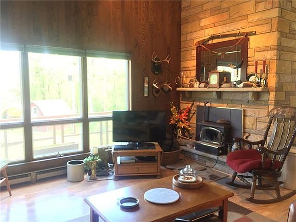 Exceptional property in a great location. Find your peace and quiet on these 28 perfect acres. Two bedrooms and two full bathrooms with an option for a third bedroom. Walk out finished lower level with a bar, perfect for entertaining. This raised ranch home also features a detached two car garage, small barn and a great porch to enjoy the abundant wildlife. Furniture can be included in sale.