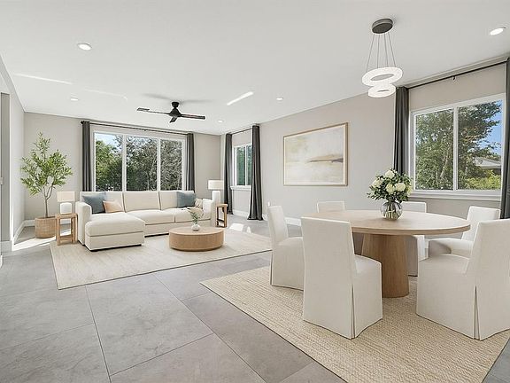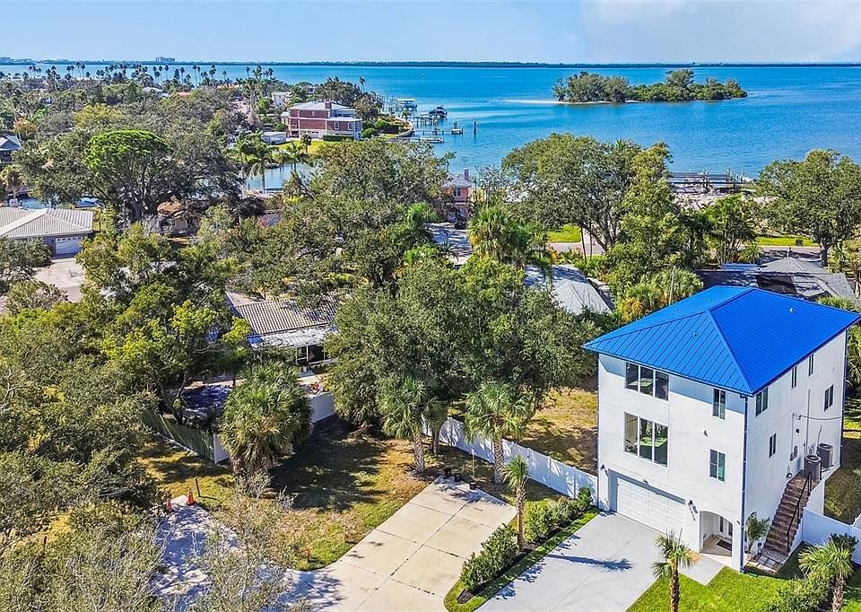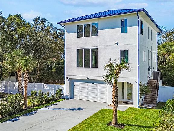 One or more photo(s) has been virtually staged. Welcome to the Dunedin lifestyle, where every day feels like a vacation. This elevated modern new home was designed for effortless coastal living with impact windows, a metal roof, no HOA and, according to the owner, peace of mind of being high and dry. Inside, tall ceilings, abundant natural light and a soft neutral palette create an immediate sense of calm. The open living area flows into a beautiful kitchen with stone counters, a large island, wall oven and walk-in pantry. Sliding doors open to the covered terrace, ideal for sunset breezes and quiet evenings outdoors. The primary suite offers a peaceful escape with a glimpse of the Gulf, a spa-like bath and a generous dressing room. Guest rooms are bright and inviting, and upstairs laundry adds convenience. The ground level is a rare luxury with parking for four cars plus flexible space for a gym, hobby room, workshop or storage for kayaks, paddle boards and golf carts. The oversized lot offers room for a future pool, garden or outdoor lounge, with plenty of space for guests and recreational vehicles. The location is the masterpiece. Minutes to the Dunedin Marina, Honeymoon and Caladesi Islands, the Causeway, two golf courses and Pinellas Trail. A short golf-cart ride brings you to Main Street's cafés, restaurants, breweries and festivals. It's coastal living with charm, beauty and everyday convenience. A rare opportunity to own a new, elevated home in one of Florida's beloved coastal towns, blending luxury, lifestyle and freedom in one address.