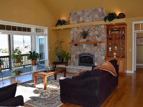 Gorgeous custom home with exceptional views. 3 bedrooms & 4 baths with over 3500 sq ft designed for entertaining. Large, flowing spaces & 3 car garage. Sprawling main floor master suite, a dream kitchen w/ marble counter tops, gorgeous vaulted living rm w/ stone gas fireplace, sitting rm/office space, main flr laundry, pantry & 2 decks. Large bsmt features recroom, wet bar, 2 bedrooms, an office/storage rm & 2 full bathrooms. Large patio w/ gas fire-pit, bars & stools. Beautifully landscaped & fully fenced. Cherry cabinets, 7 sets of sliding glass doors, 2 upper decks - one off sitting room, one off dining/living. Master bath w/ steam shower & large jetted tub. Custom kitchen w/ pot filler, drawer dishwasher, breakfast bar & island. Lots of storage in laundry, pantry & bsmt. 2nd gas fireplace in bsmt. Storage shed included.